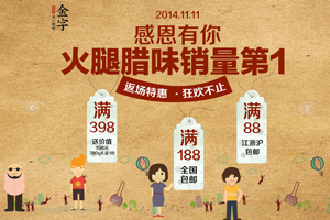 入了12月的江南,空氣中總會飄散著一股似近似遠的肉香味,勾人魂魄到直咽口水。窗檐下懸掛的香腸臘肉有一種“年之將近”的即視感,因為那就是刻到骨子里的年味啊。就算時代再變化,“小雪腌菜,大雪腌肉”的習(xí)慣依然被懂得生活的人代代傳承著。2014年的金字天貓旗艦店雙12來了,為您準備的好臘味上新,十二道臘味年前抄底價。春運車票已經(jīng)可以買了,臘味也同樣:回家過春節(jié),你準備好了沒有?
